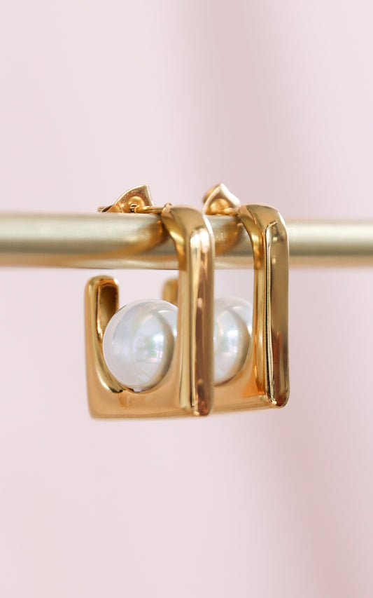 Venezio Hoop Earrings - Gold Square Pearl