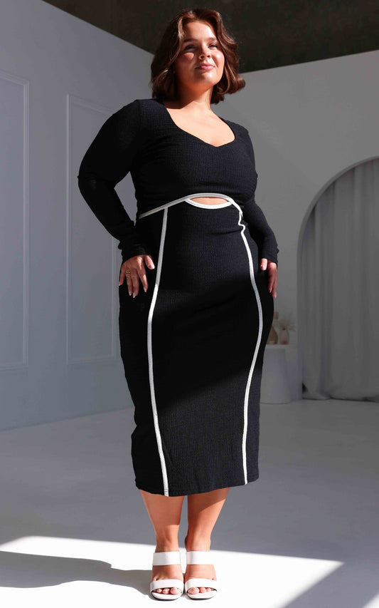 Kobe Long Sleeve Midi Dress - Black Sheen