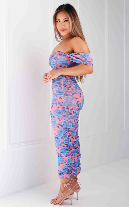 Jalvina Mesh Midi Dress - Pink Blue Floral
