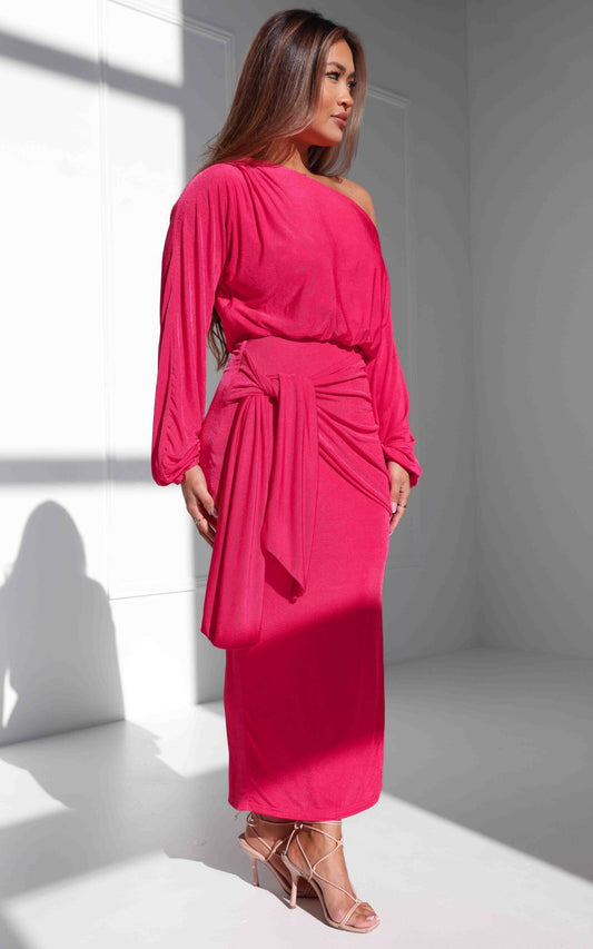 Kobe Long Sleeve Midi Dress - Watermelon Pink Sheen