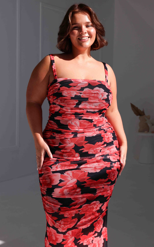 Love You Anyways Mesh Maxi Dress - Black Red Floral