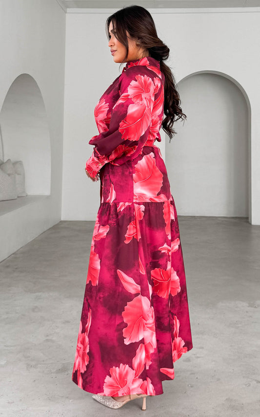 Zariko Maxi Dress - Hot Pink Orange Floral