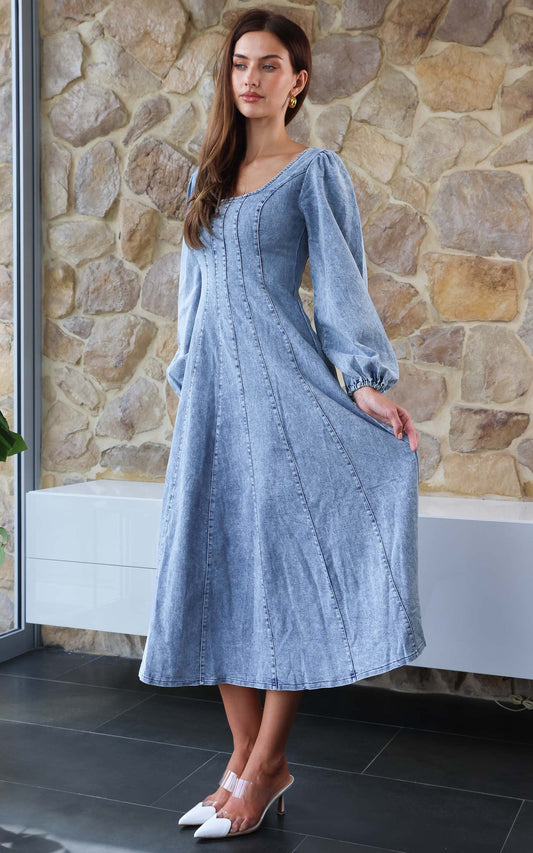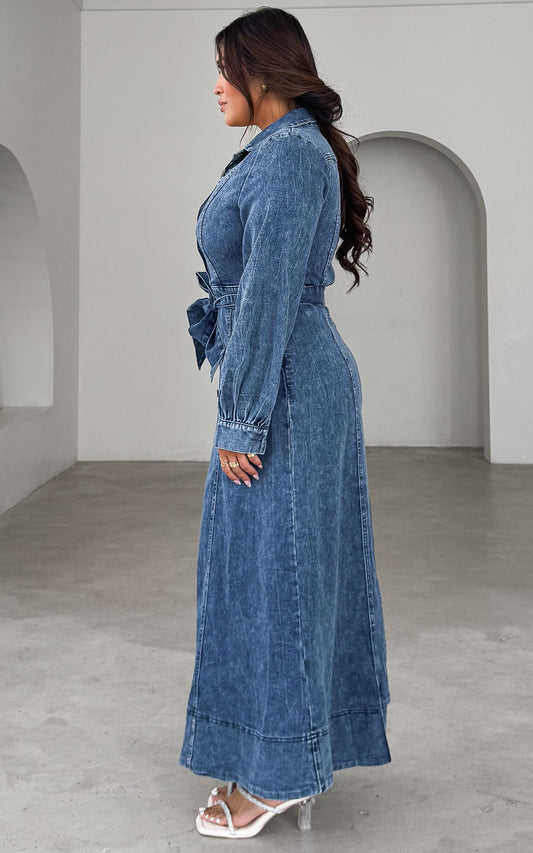 Kartford Long Sleeve Denim Maxi Dress - Blue