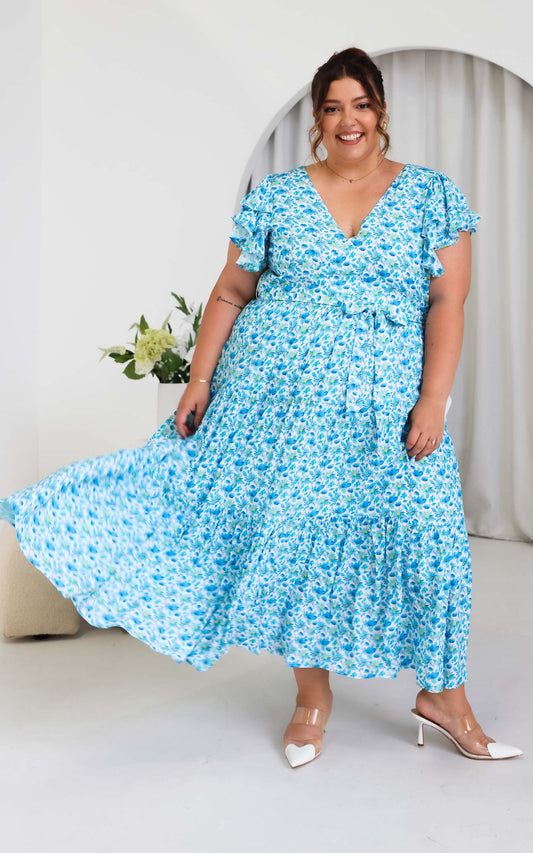Lazarus Mesh Maxi Dress - Blue Multi Floral