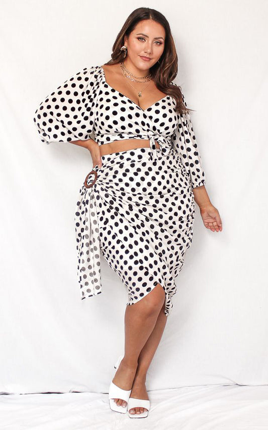 Havana Wrap Midi Skirt - White Polka