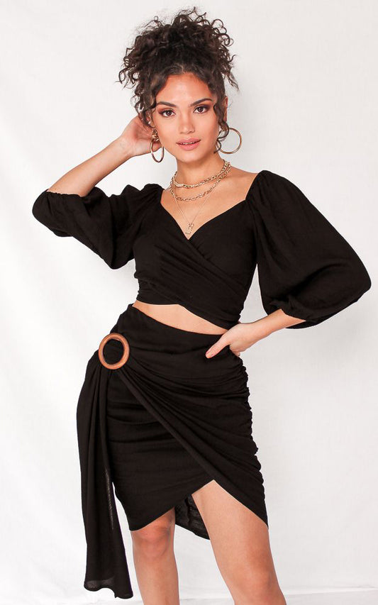 Havana Wrap Midi Skirt - Black