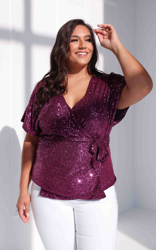 Beyond The Stars Short Sleeve Top - Wine Sequin