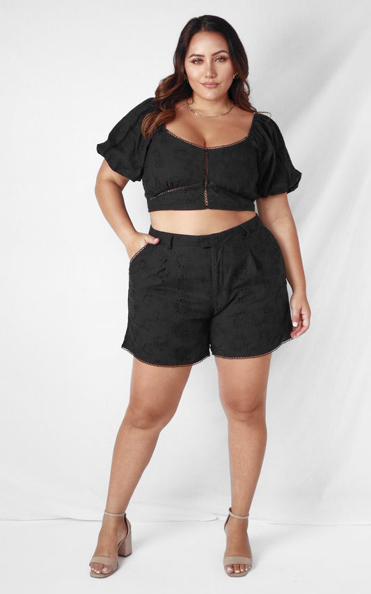 Beyond The Stars Short Sleeve Top - Black Sequin