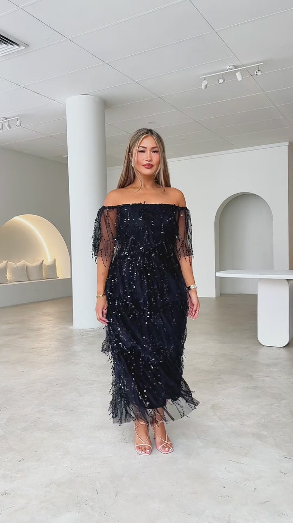 Zephara Mesh Maxi Dress - Black Navy Floral