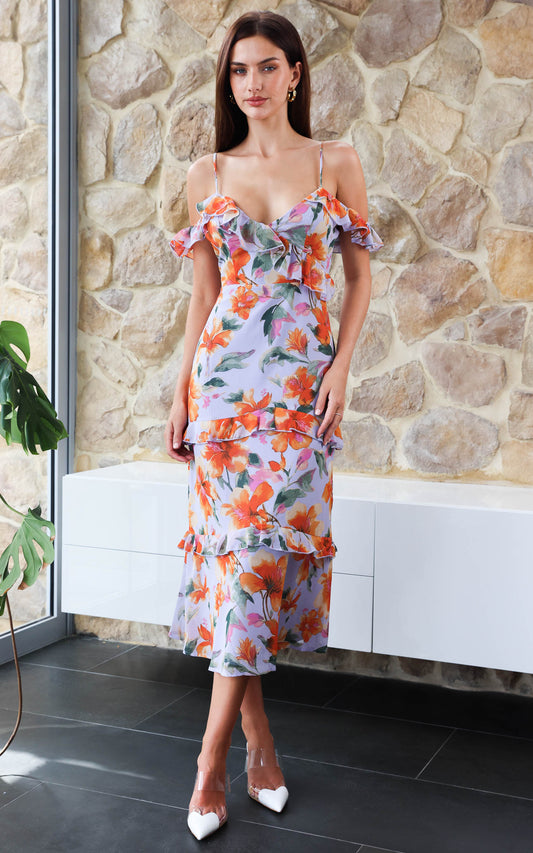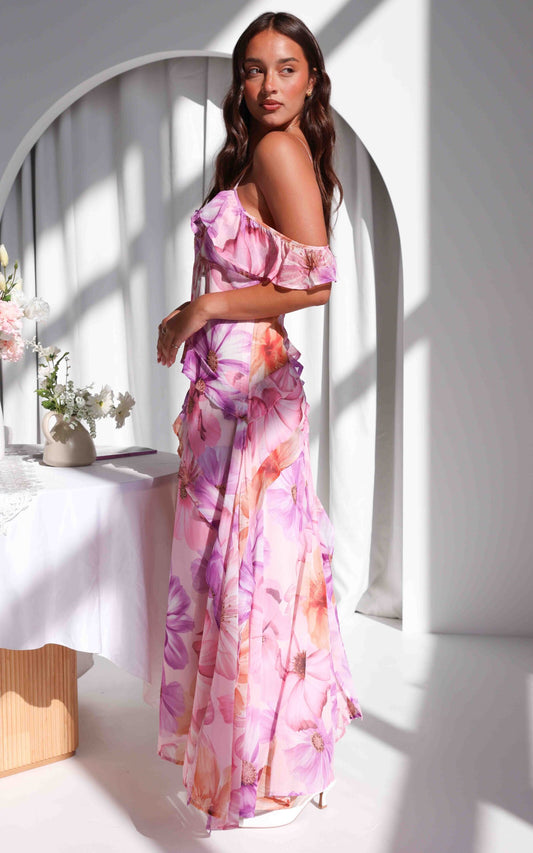 Kehlani Maxi Dress - Orange Pink Multi Floral