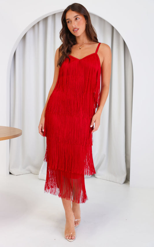 You Found Me Fringe Tassel Maxi Dress - Gold