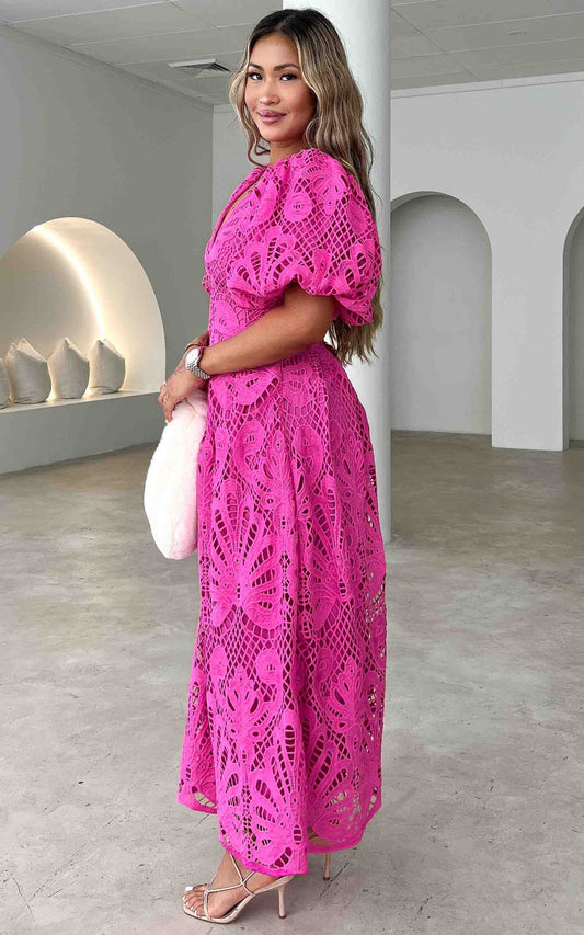 Doneth Long Sleeve Maxi Dress - Navy Blue Floral