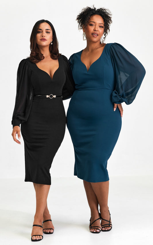Tammy Long Sleeve Midi Dress - Midnight Blue