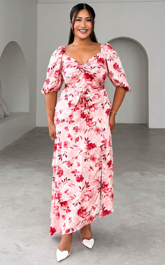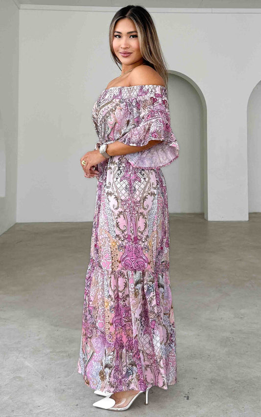 Gamela Gem Embellished Maxi Dress - Pink Multi Print