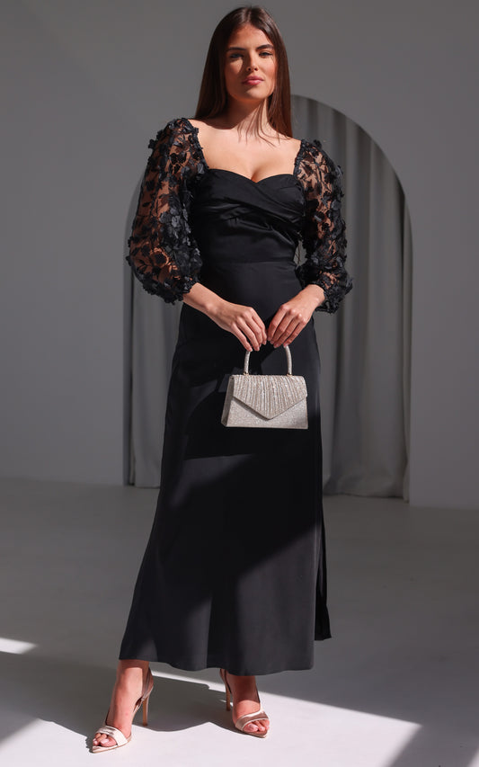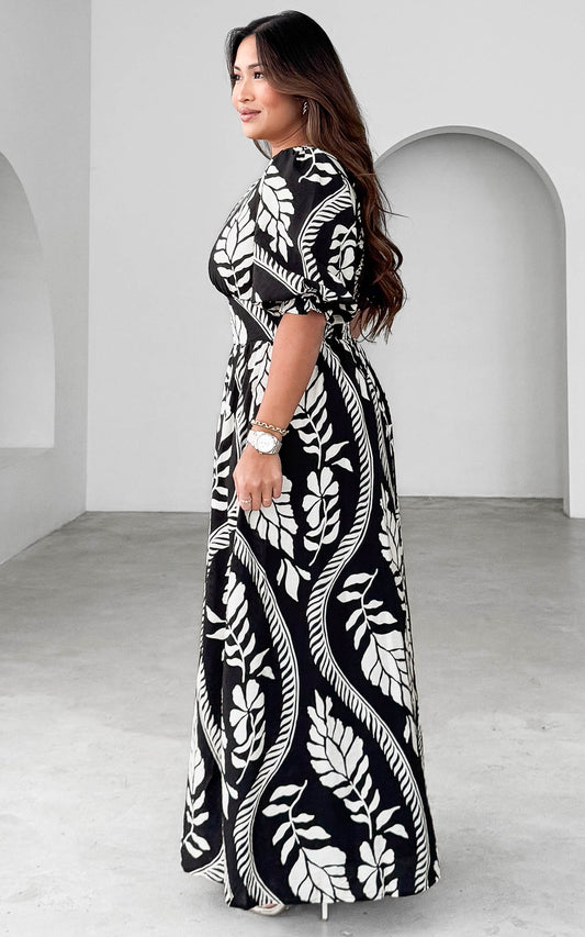Aretha Three Quarter Sleeve Maxi Dress - Black White Print