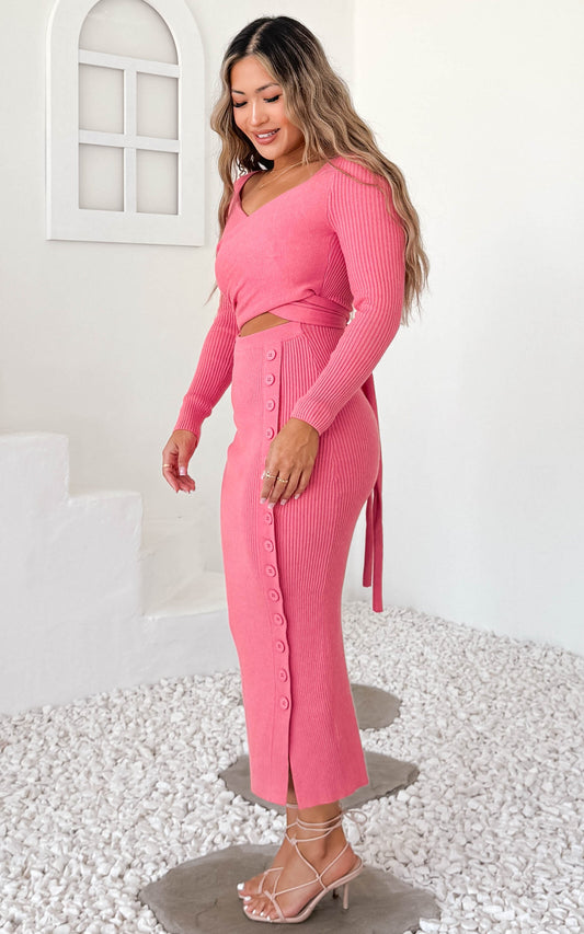 Solita Knit Midi Skirt - Hot Pink Metallic