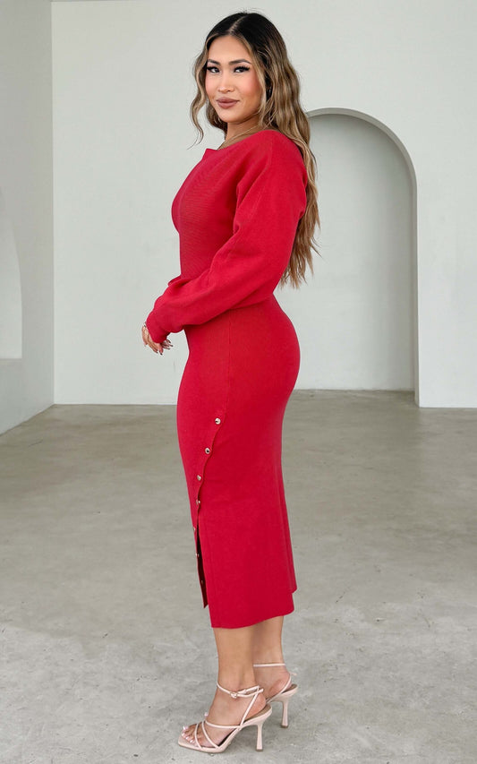 Araya Knit Split Midi Skirt - Chocolate Brown