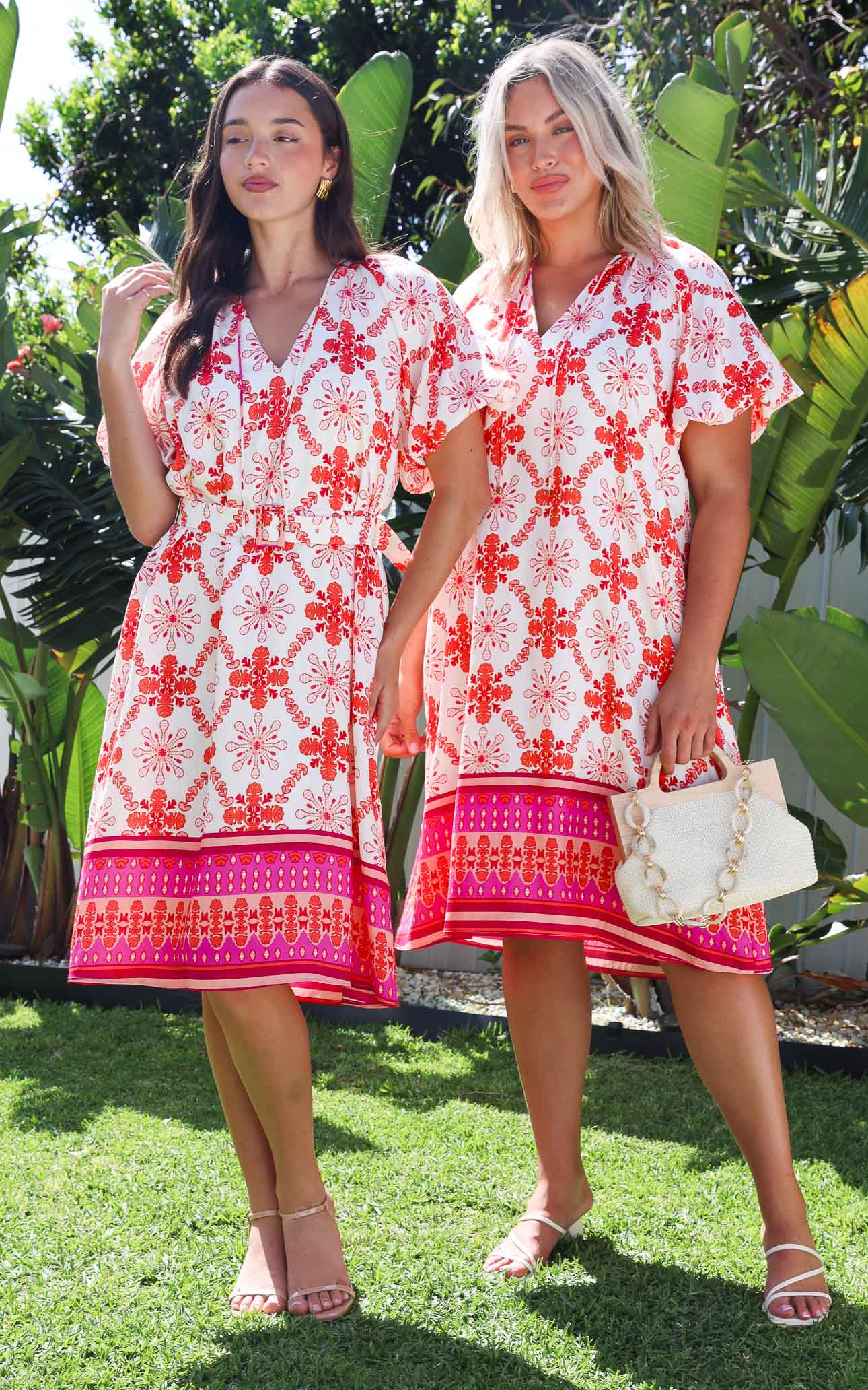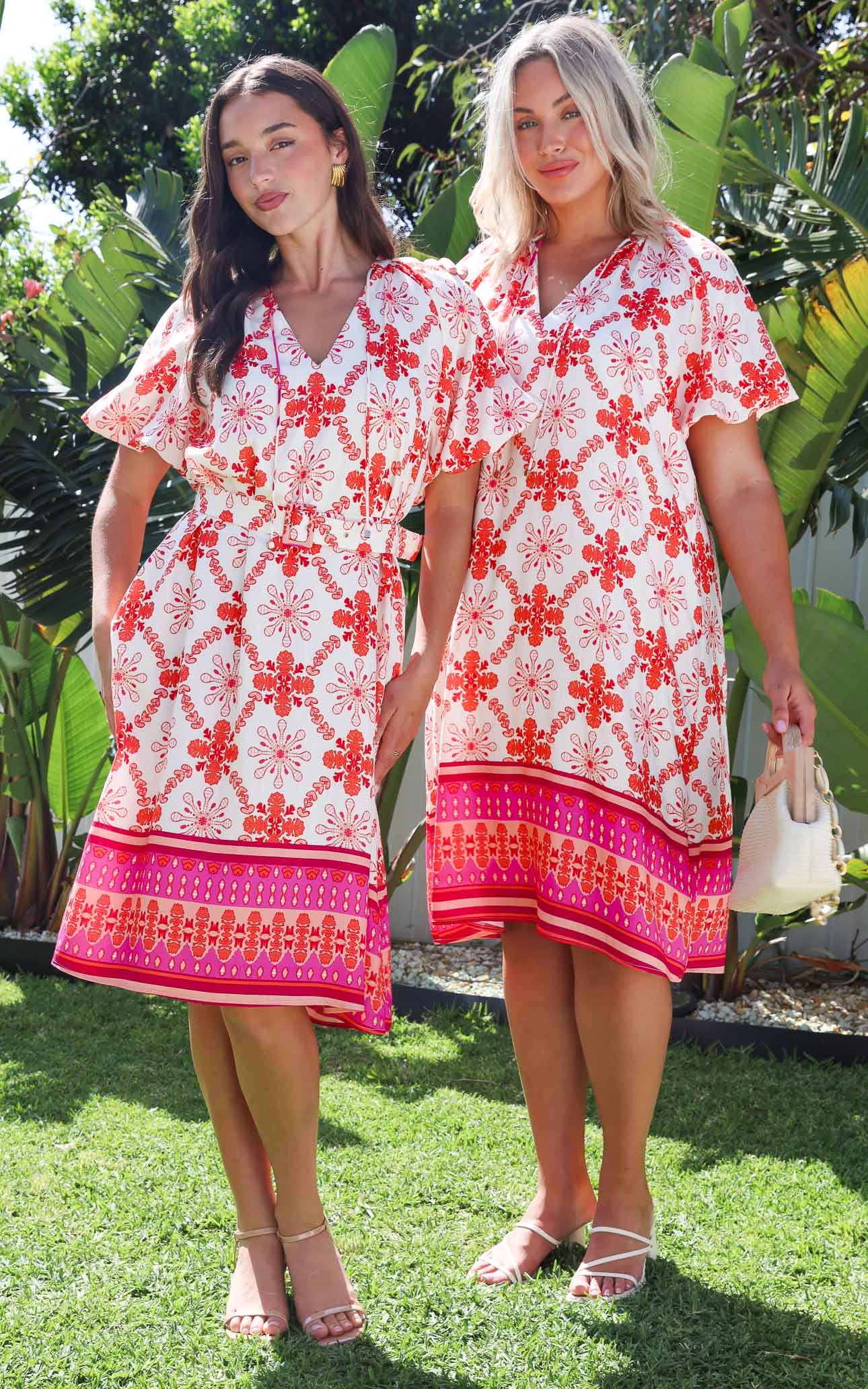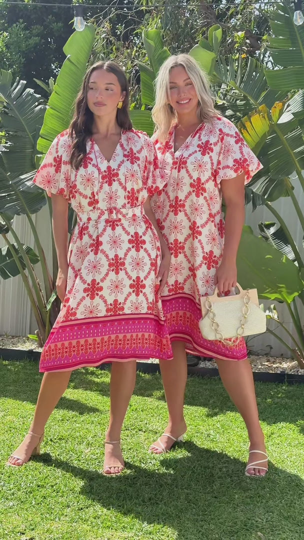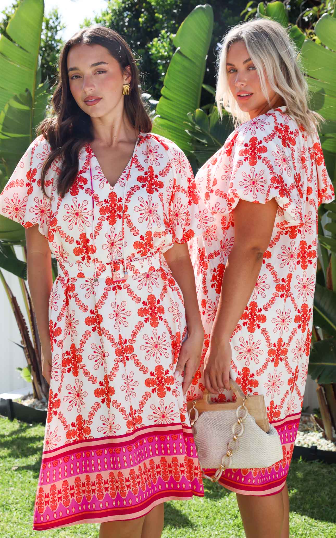 – Colour: cream base with pink, orange multi print (print placement may vary with each piece)