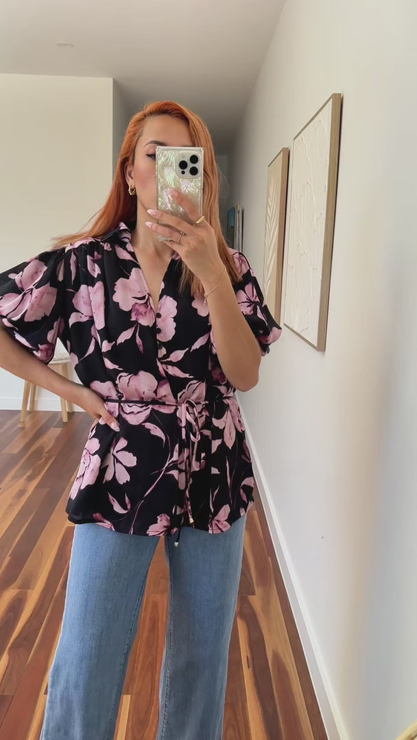 – Colour:  black base with mauve mist floral print (print placement may vary with each piece)