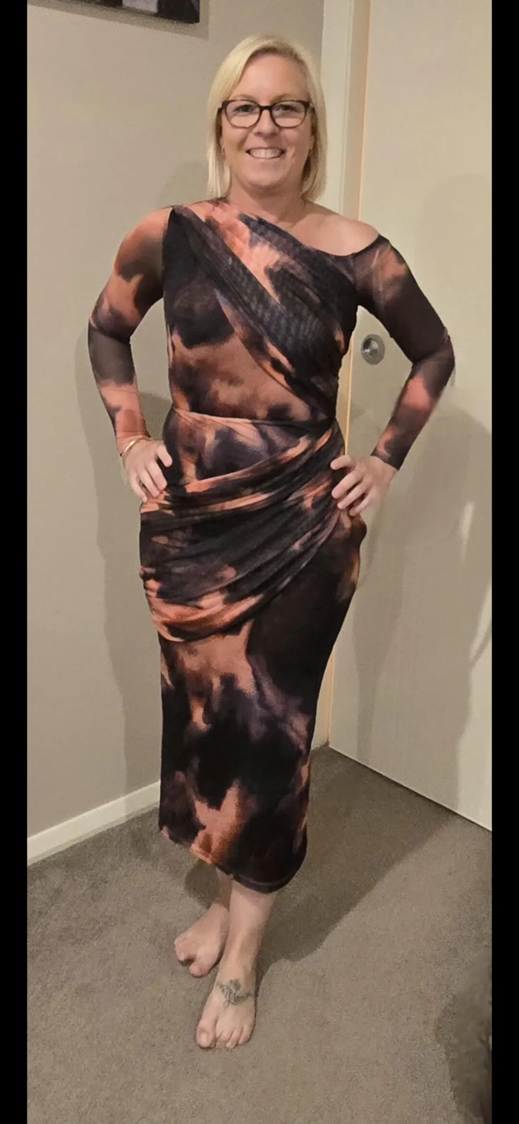 Benita Mesh Midi Dress - Brown Orange Multi Print