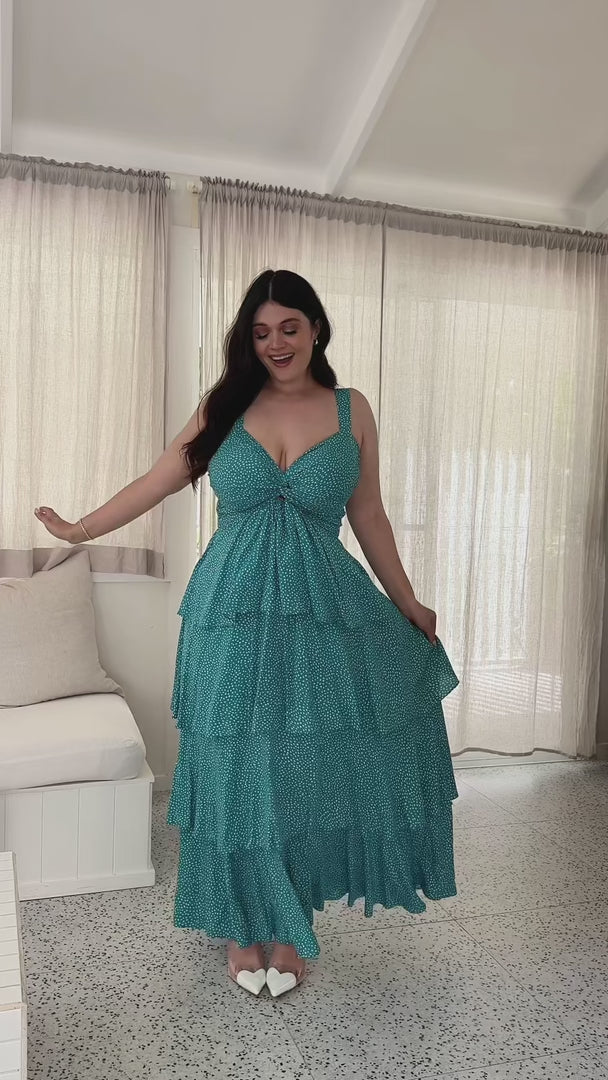 Cherika Maxi Dress - Turquoise Polka Dot