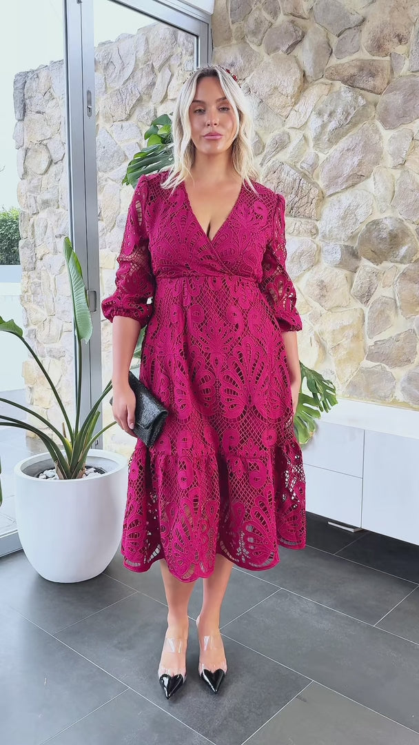 Criselda Lace Midi Dress - Wine
