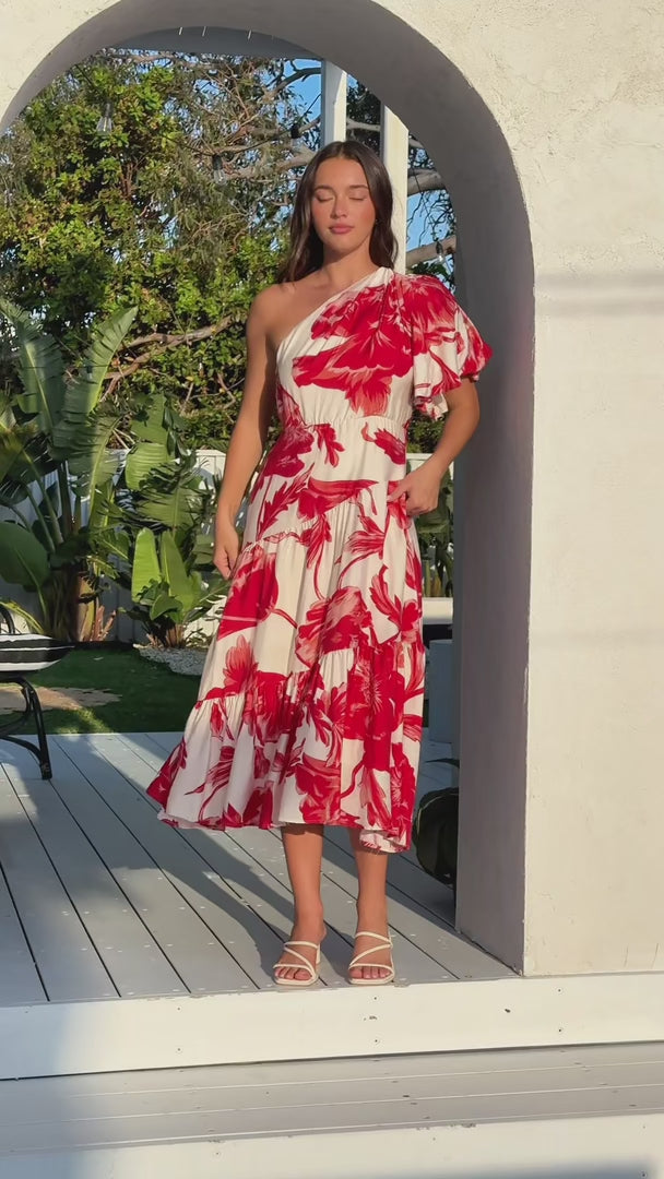 Denver Maxi Dress - Beige Red Floral