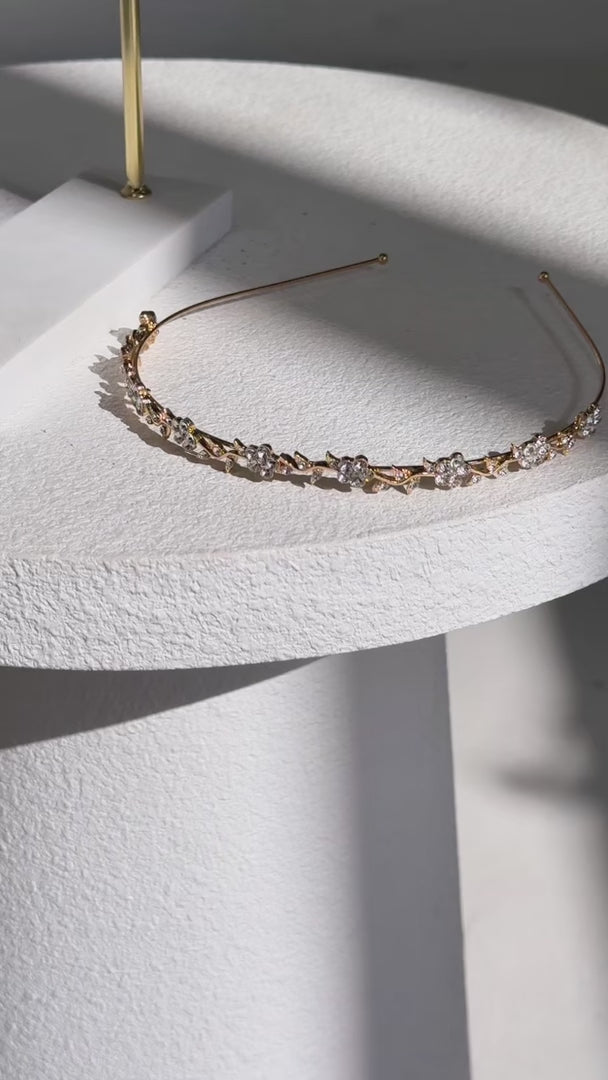 Metal band with diamante embellishments. Placement of embellishment may vary with each piece.