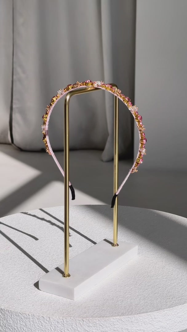 Metal band with diamante and bead embellishments. Placement of embellishment may vary with each piece.