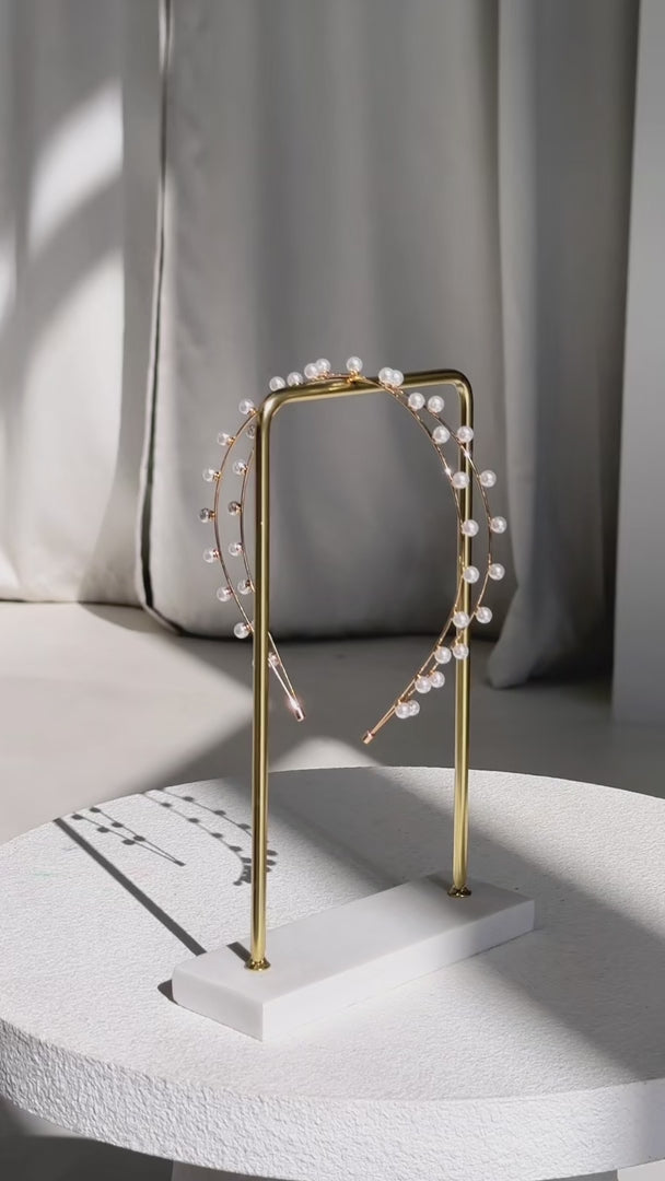 Metal band with faux pearls. Placement of embellishment may vary with each piece.