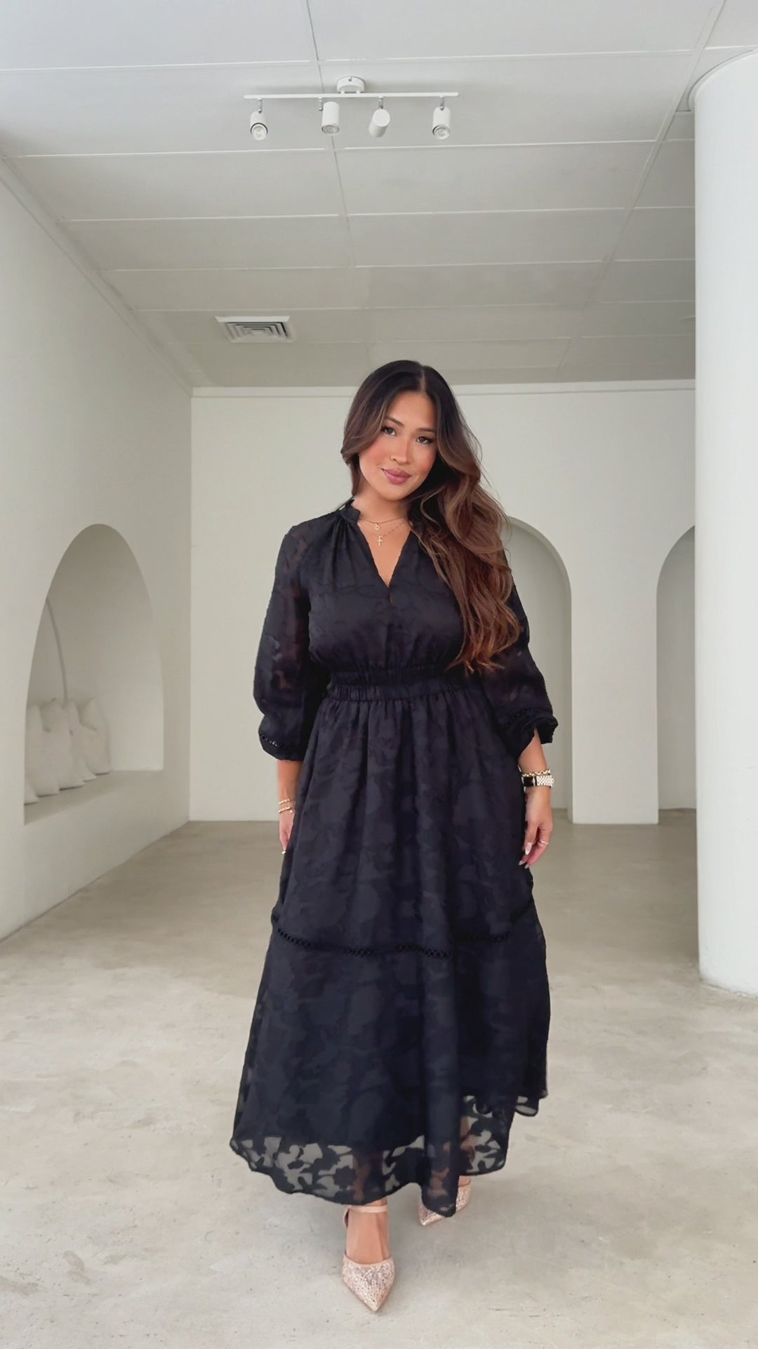 – Sheer long balloon sleeves with elastic cuff and open circle lace cut out detail