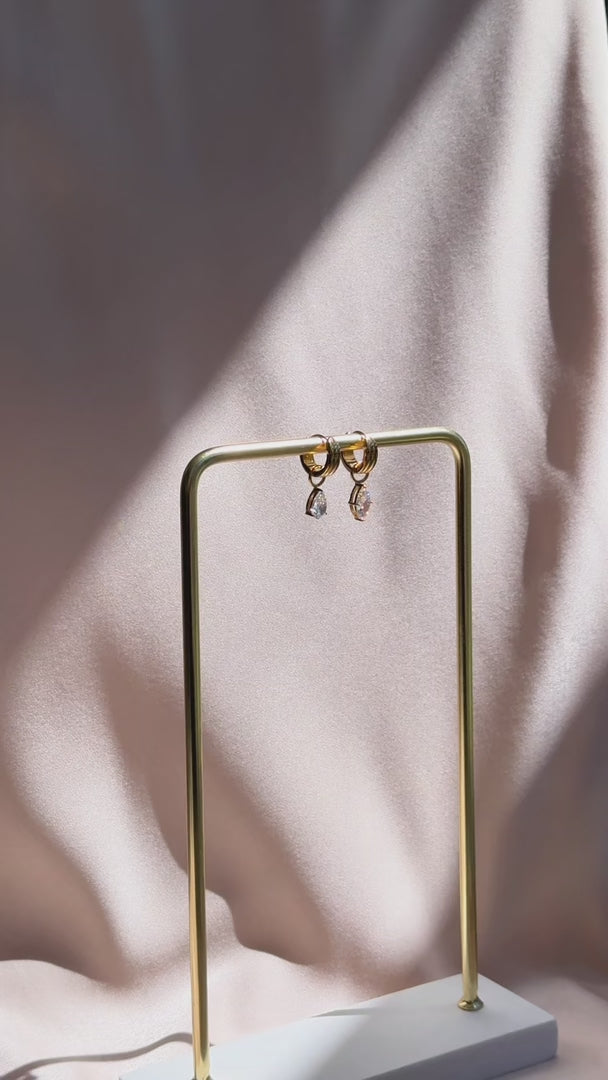 – Ribbed textured hoop with removable dangling mix match (one tear/pear and one marquise shaped) diamante stone charm design