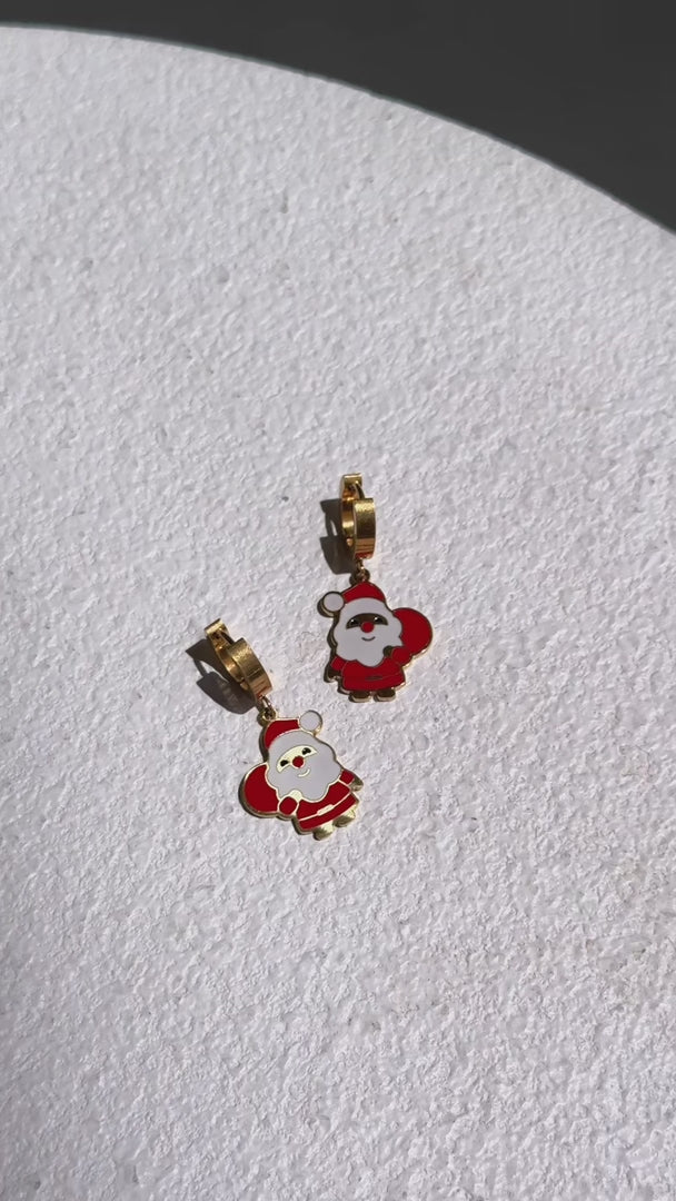 Kris Kringle Hoop Charm Earrings - Gold Santa