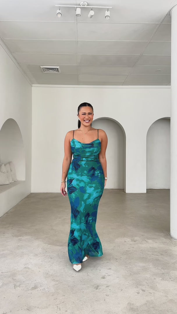 Lizzie Mesh Maxi Dress - Green Blue Print