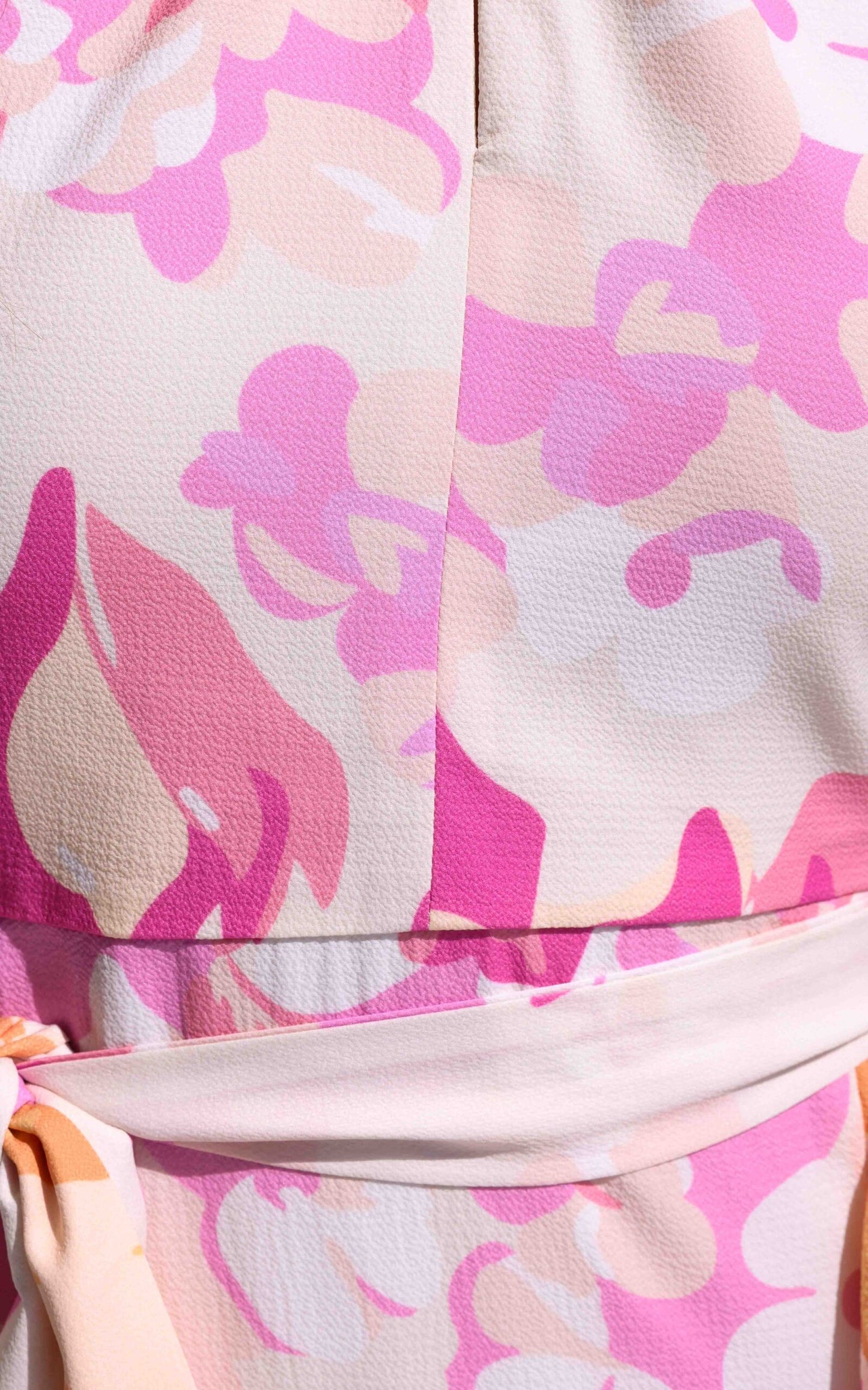 – Colour: cream base with pink and orange floral (print placement may vary with each piece)