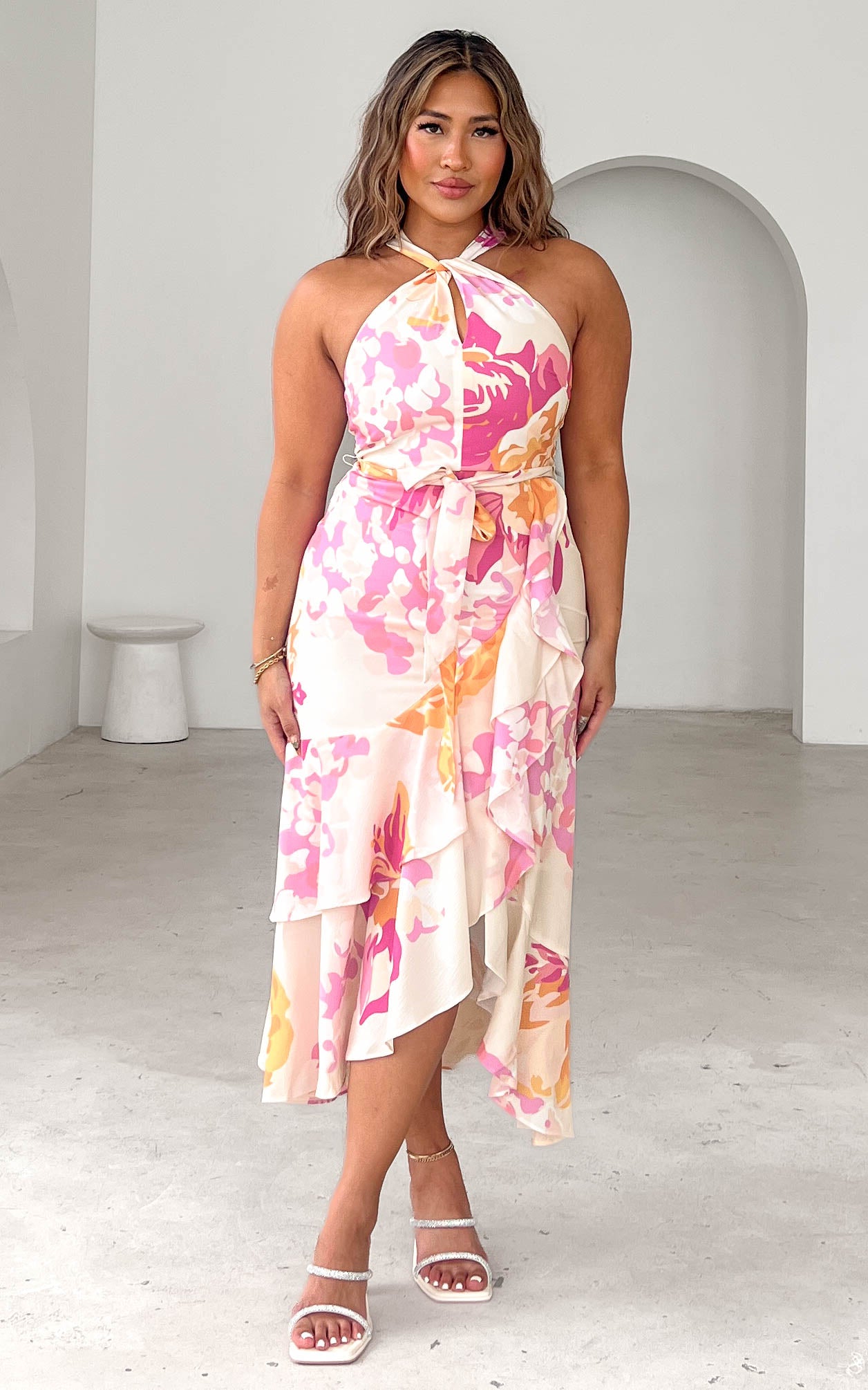 Lucetta Midi Dress - Cream Pink Floral