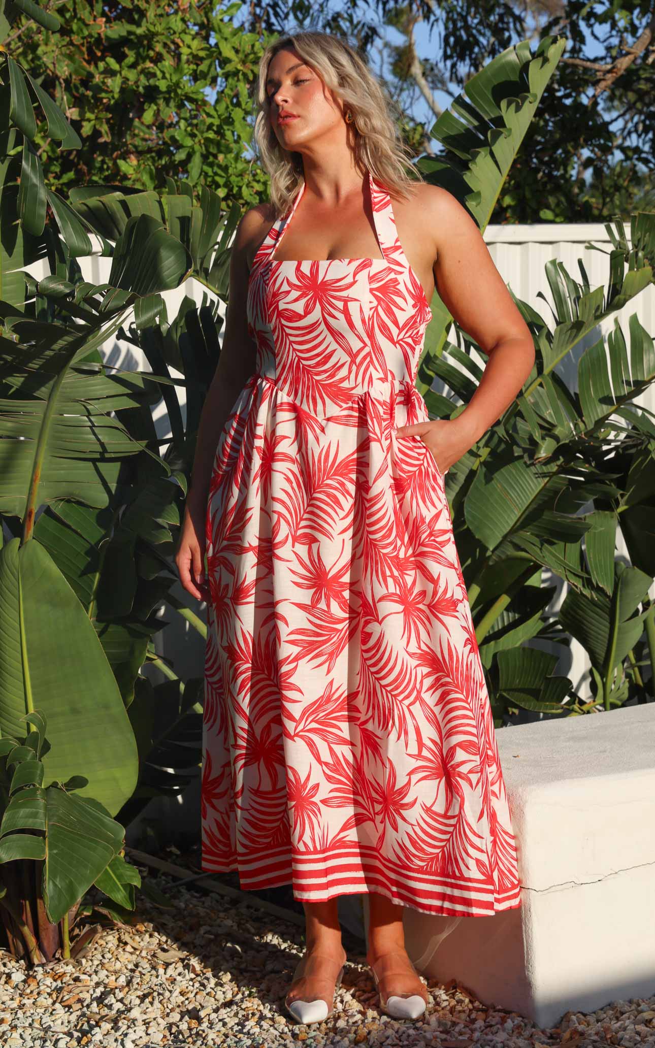 Lyra Maxi Dress - Orange Leaf Print