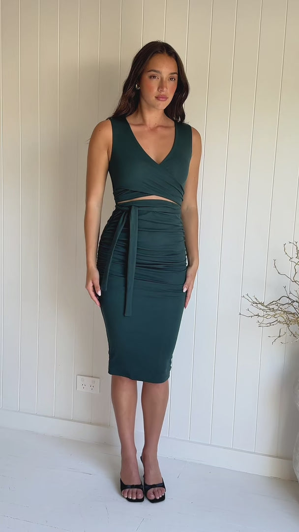 Mimi Sleeveless Midi Dress - Dark Forest Green