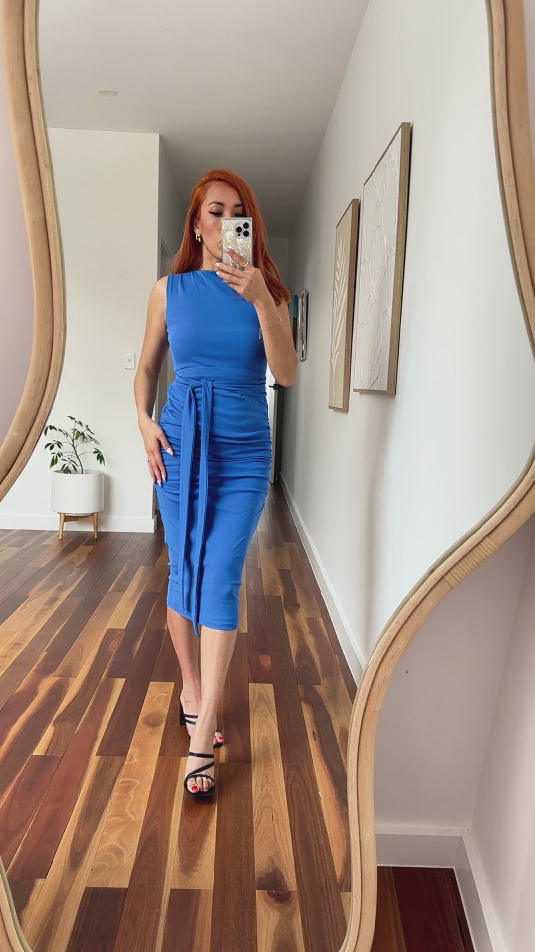 So you’ve met Mercedes and Sanremo but now Mimi has arrived and making a grand entrance! Our in-house designer has created a sexy remake with this exclusive to By Amica design. Created for comfort in a gorgeous jersey spandex fabric which is double lined, coming in a midi bodycon style and ruching on the sides. Super comfy and of course stunning to the max!