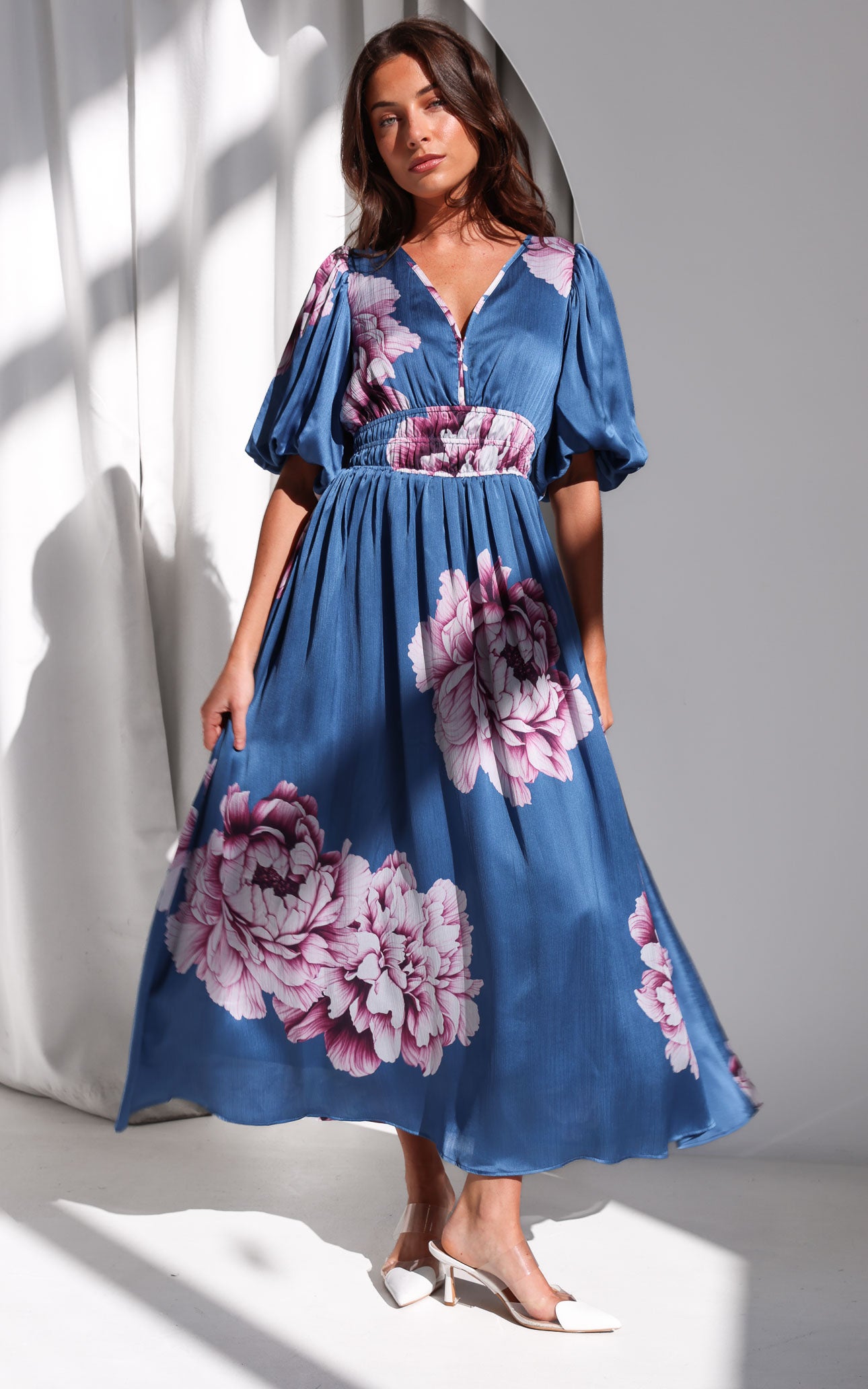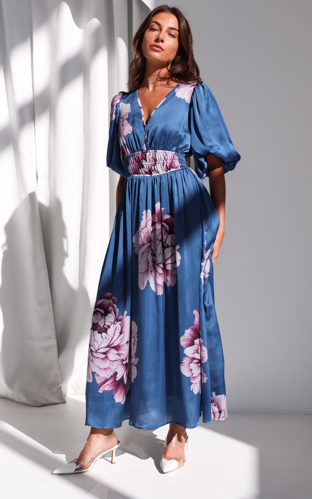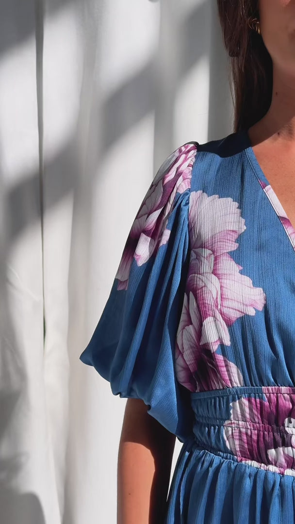 Monique Maxi Dress - Steel Blue Mauve Floral