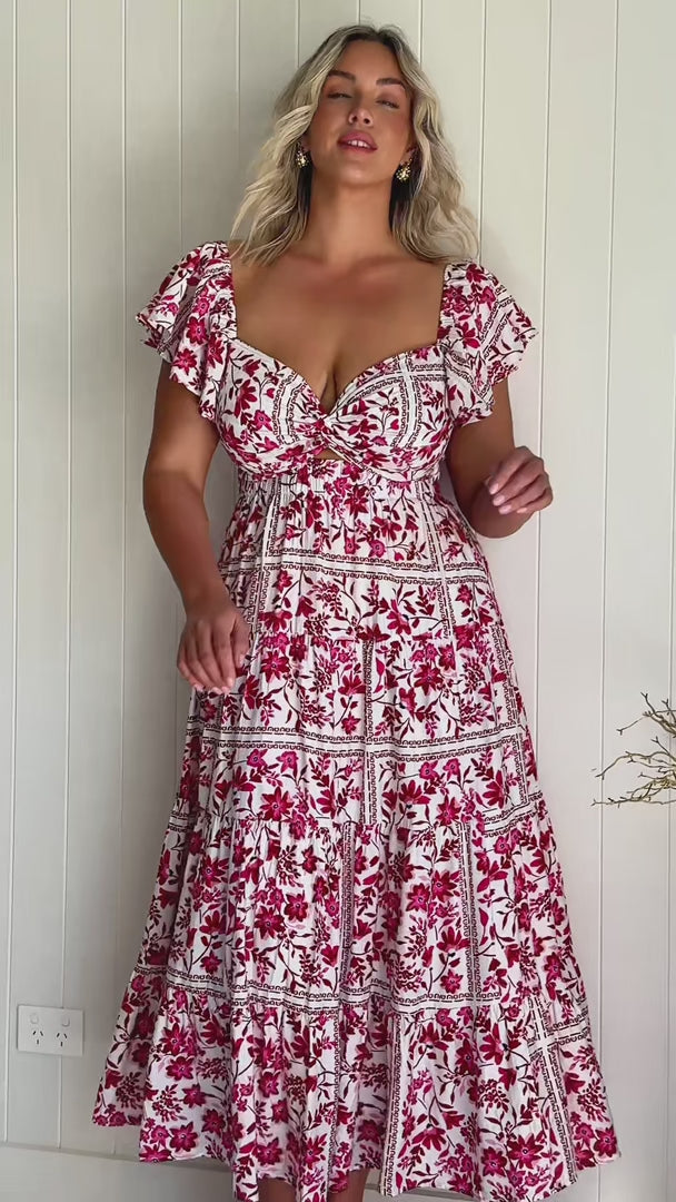 Odessey Shirred Back Panel Maxi Dress - White Pink Floral