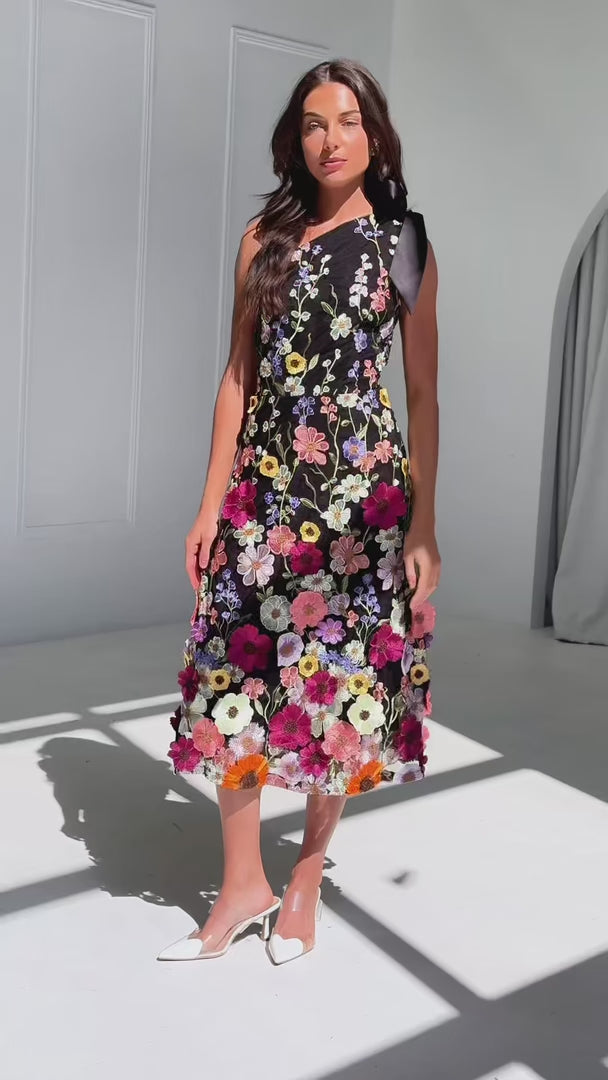 Poppy Midi Dress - Black Multi Floral