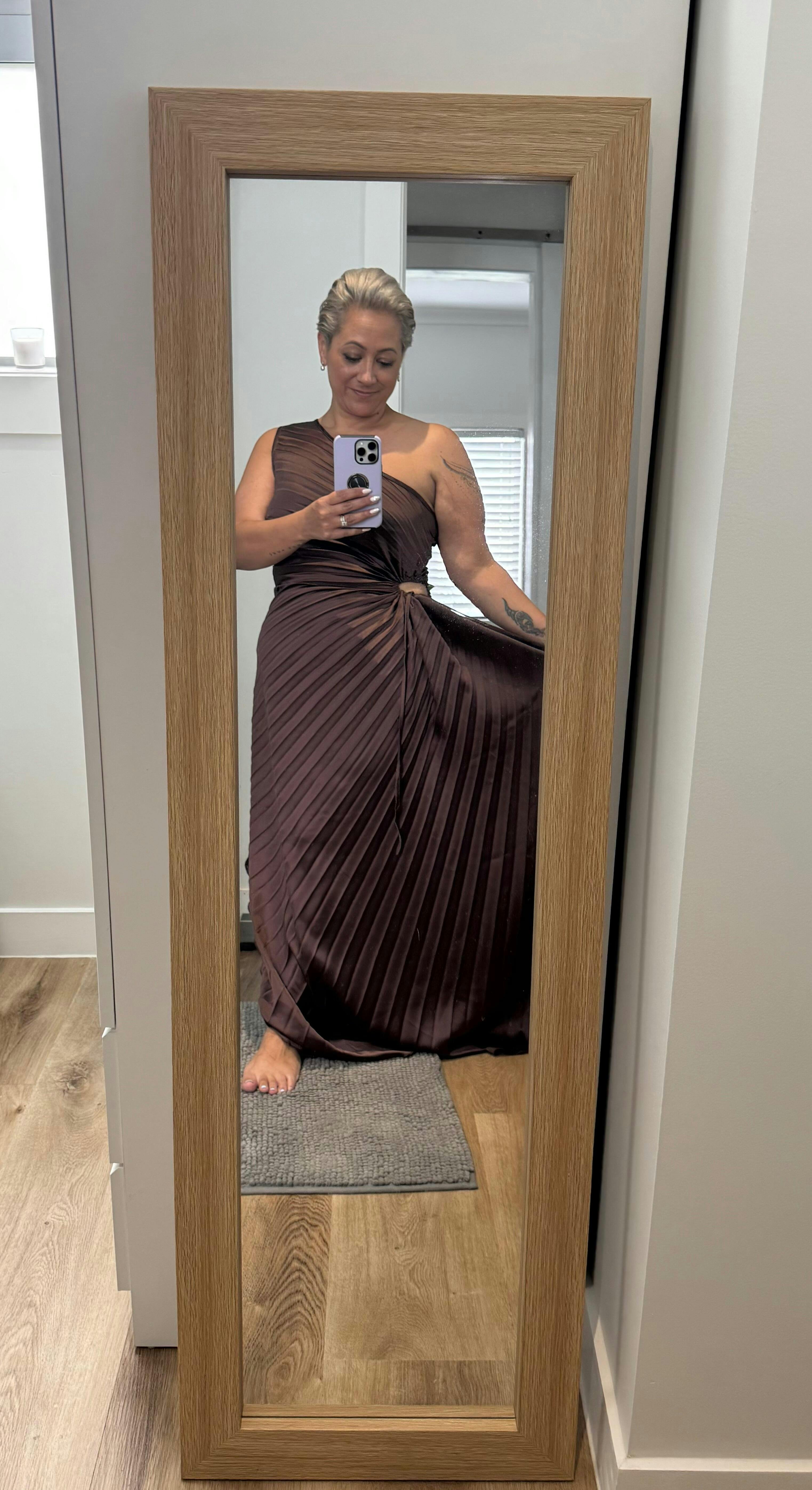 – Shoulder to shortest hem is 102cm and to longest hem is 145cm for size 6. The length will increase with size.