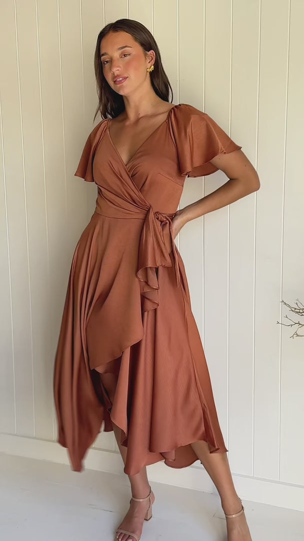 Rossetti Short Sleeve Wrap Maxi Dress - Rust Copper