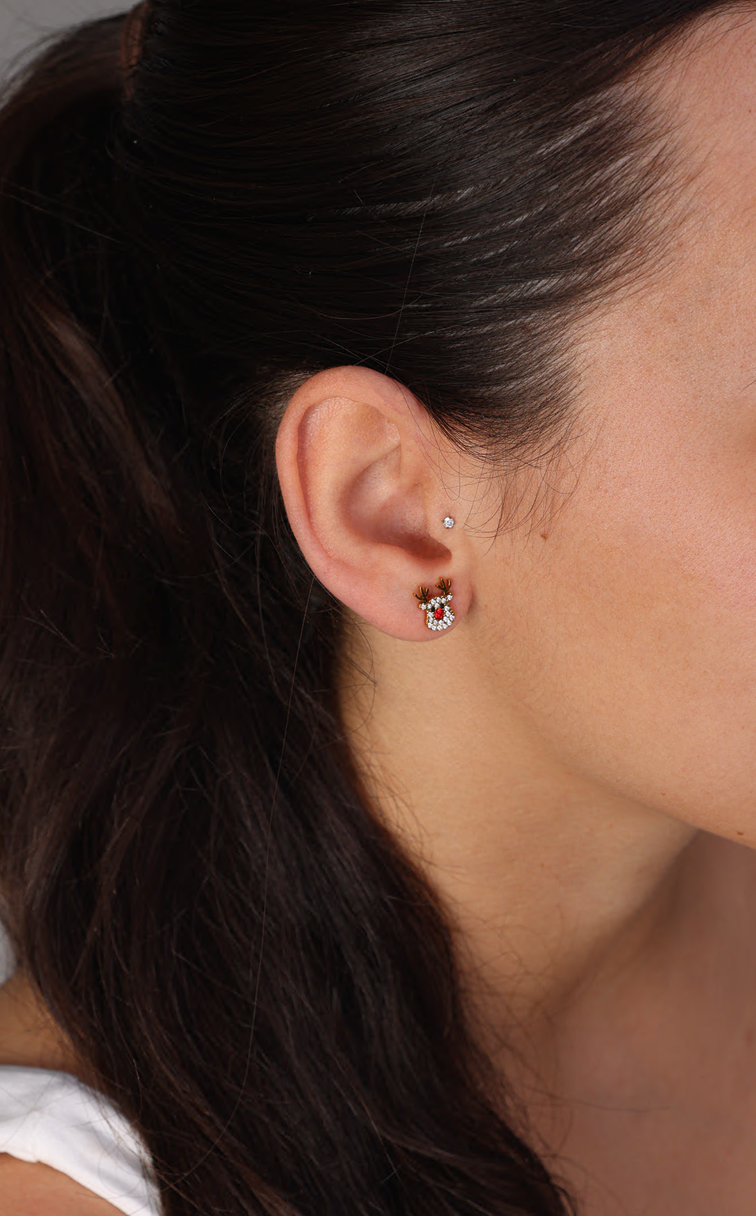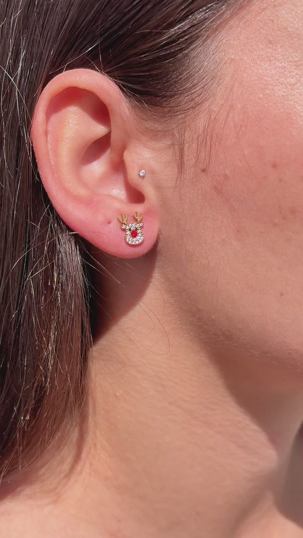 Rudolph Bauble Stud Earrings - Red Reindeer Ball