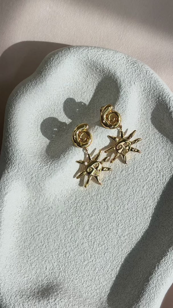 Solis Drop Stud Earrings - Gold Swirl Sun