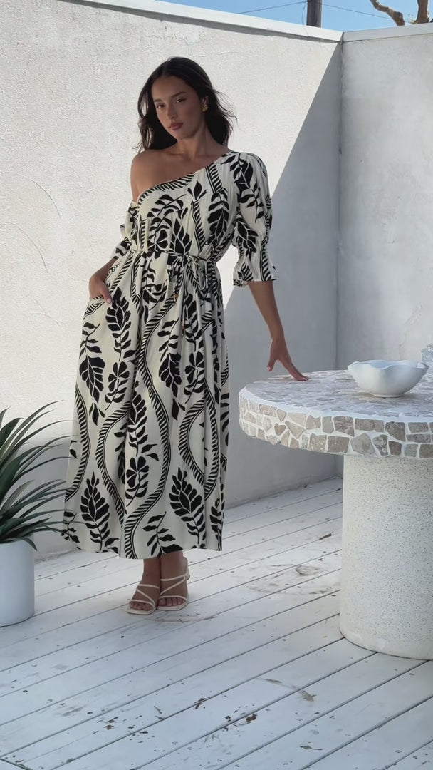 Talitha Maxi Dress - Cream Black Print