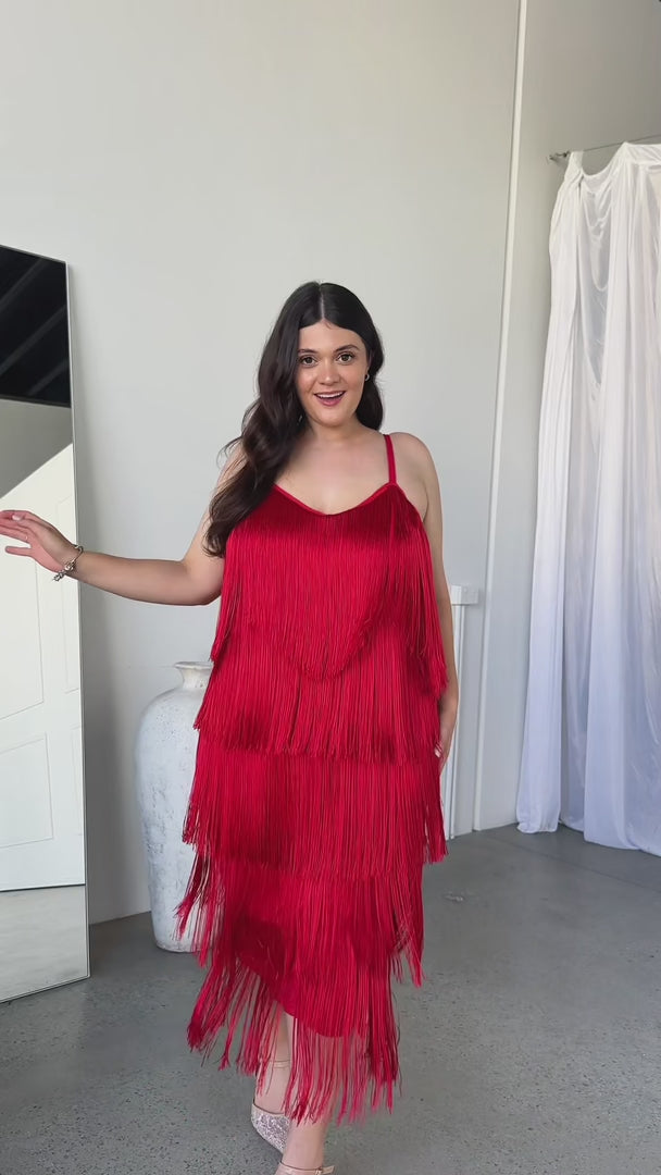 You Found Me Fringe Tassel Maxi Dress - Red