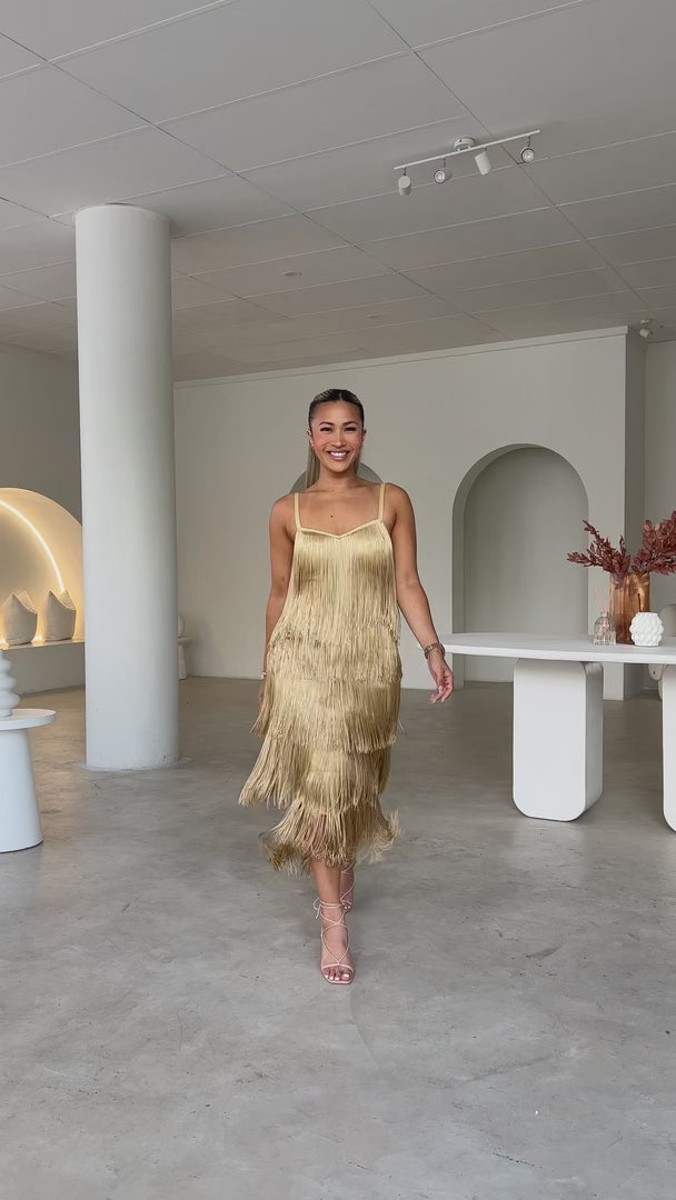 You Found Me Fringe Tassel Maxi Dress - Gold