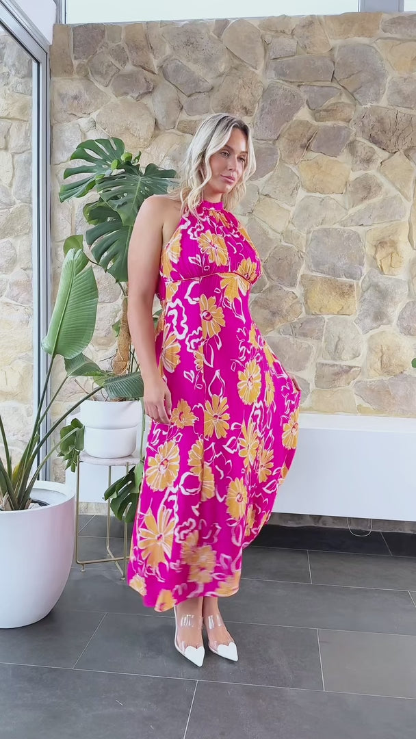 Zariko Maxi Dress - Hot Pink Orange Floral
